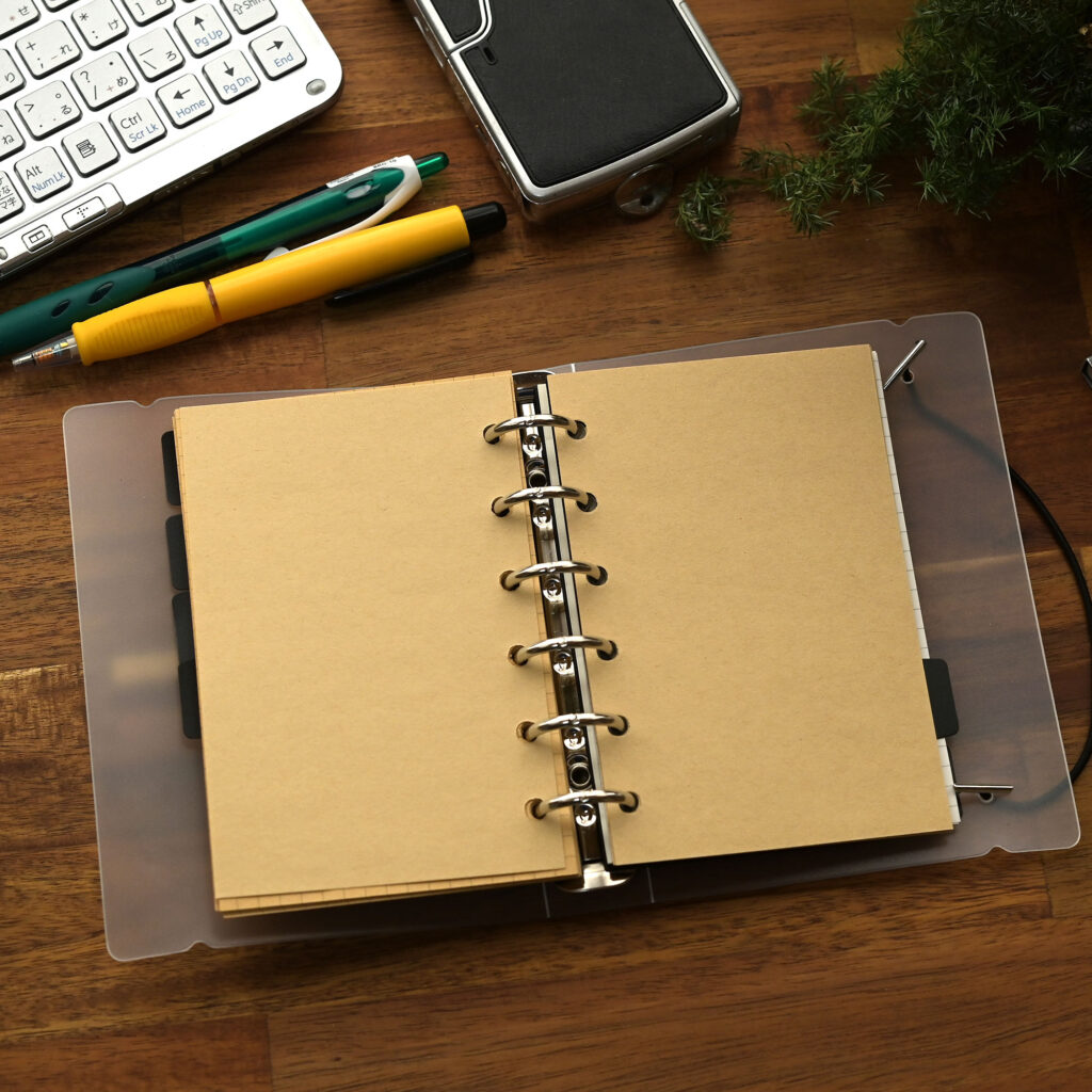 文字・図・イラスト・マインドマップなど、用途を選ばず使えるため、自分だけの手帳づくりを楽しめます。書く内容をその都度変えたい方、手帳を創作や思考整理に使いたい方へ。スケジュールやToDoのリフィルと組わせて使いたいですね。